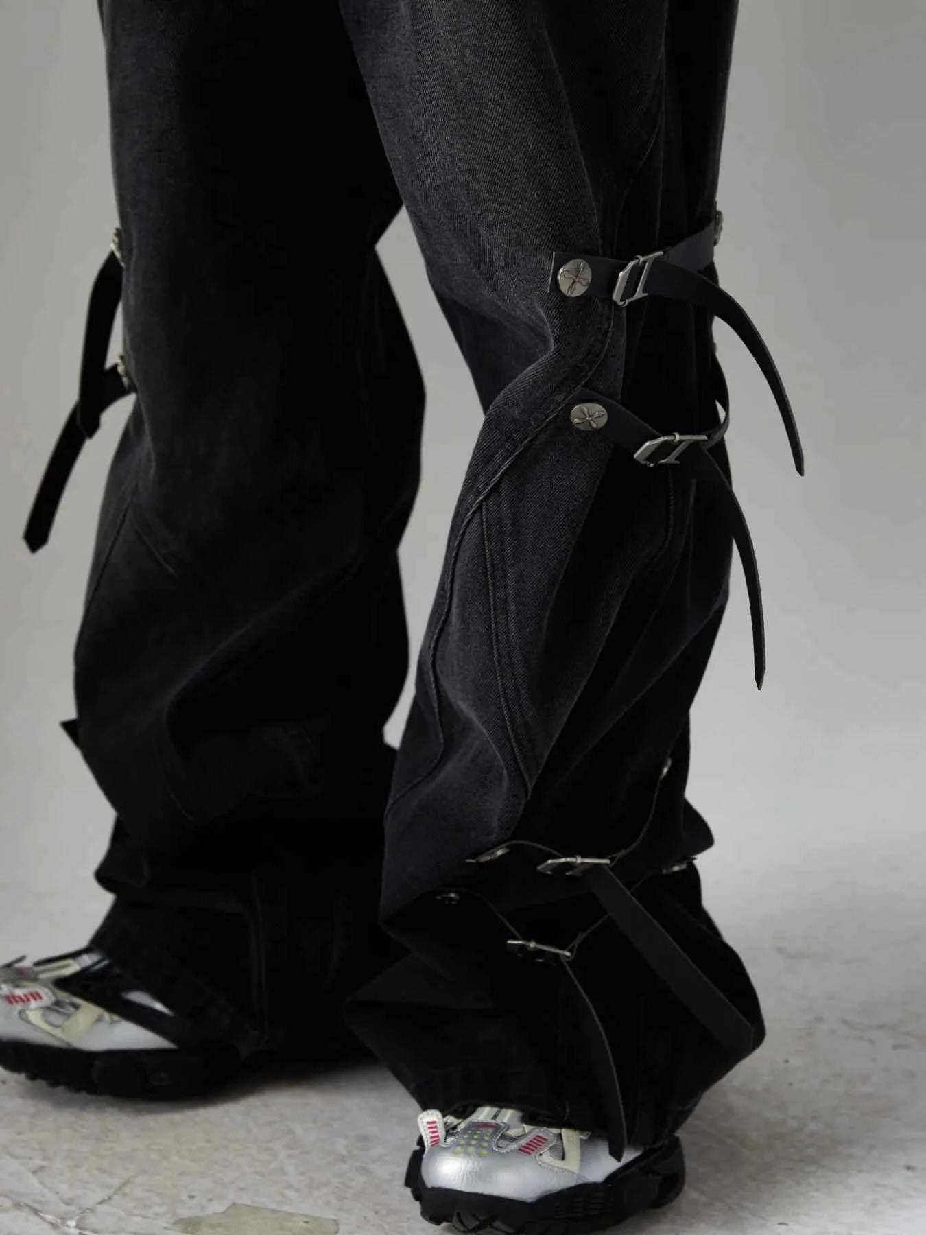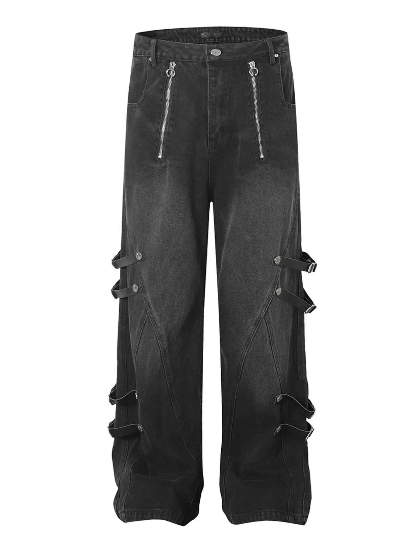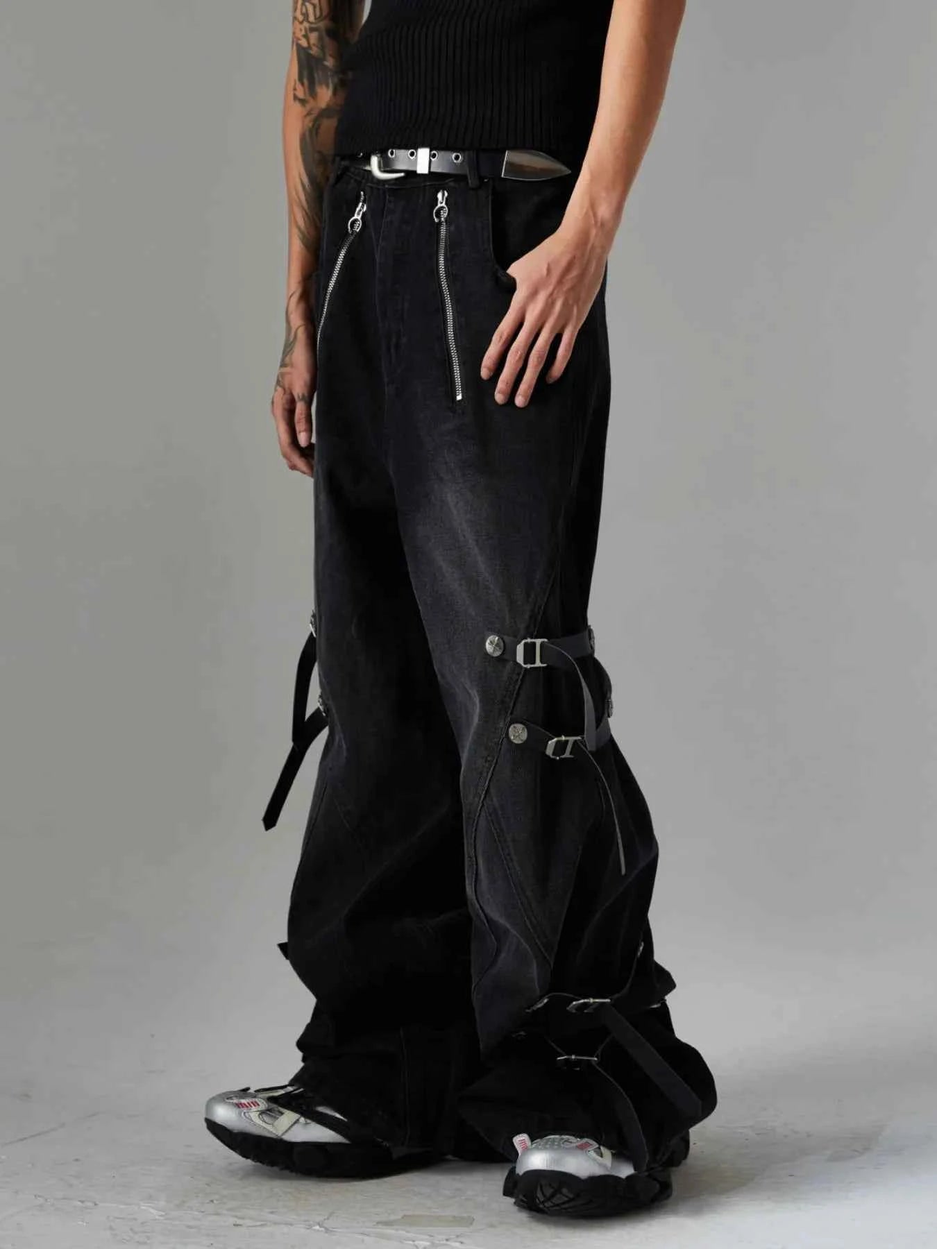 - Features:Belted,Chain,Pocketed,buckles,Zippers,Wide Leg